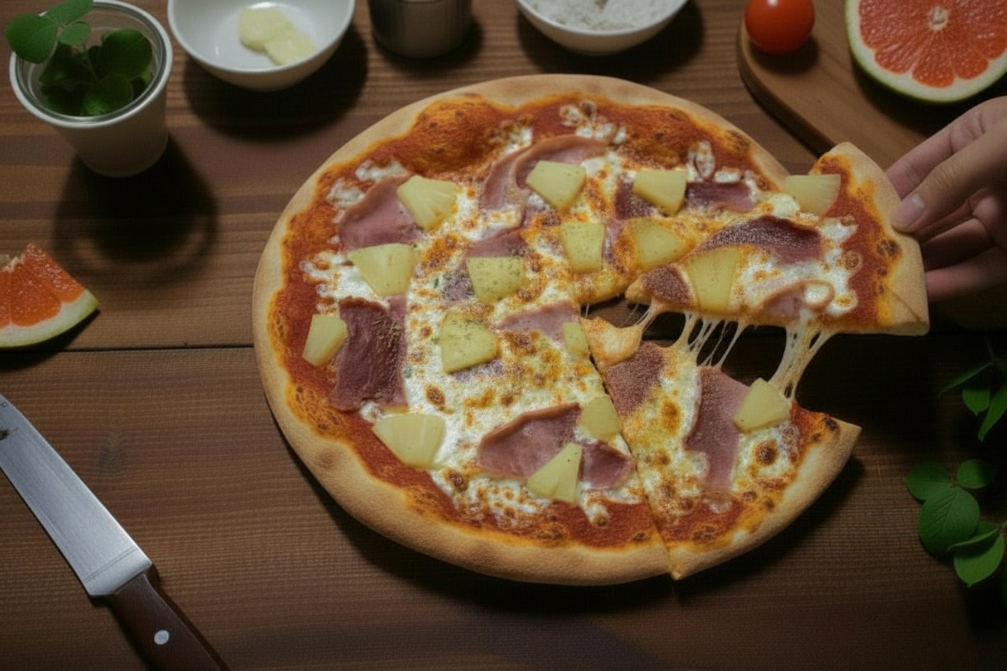Base tomate, jambon , mozzarella, origan, ananas