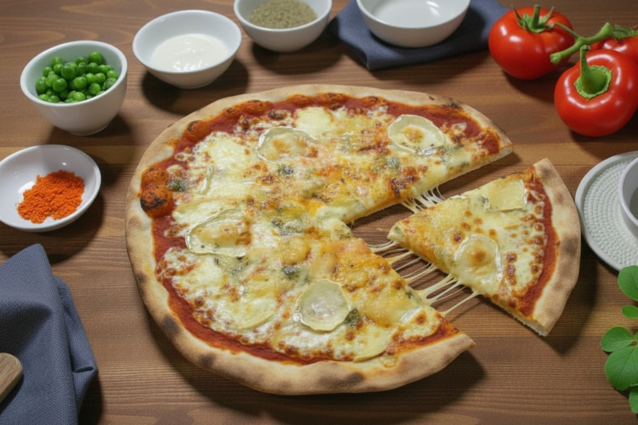 Base tomate, mozzarella, gorgonzola, chèvre , camembert, origan