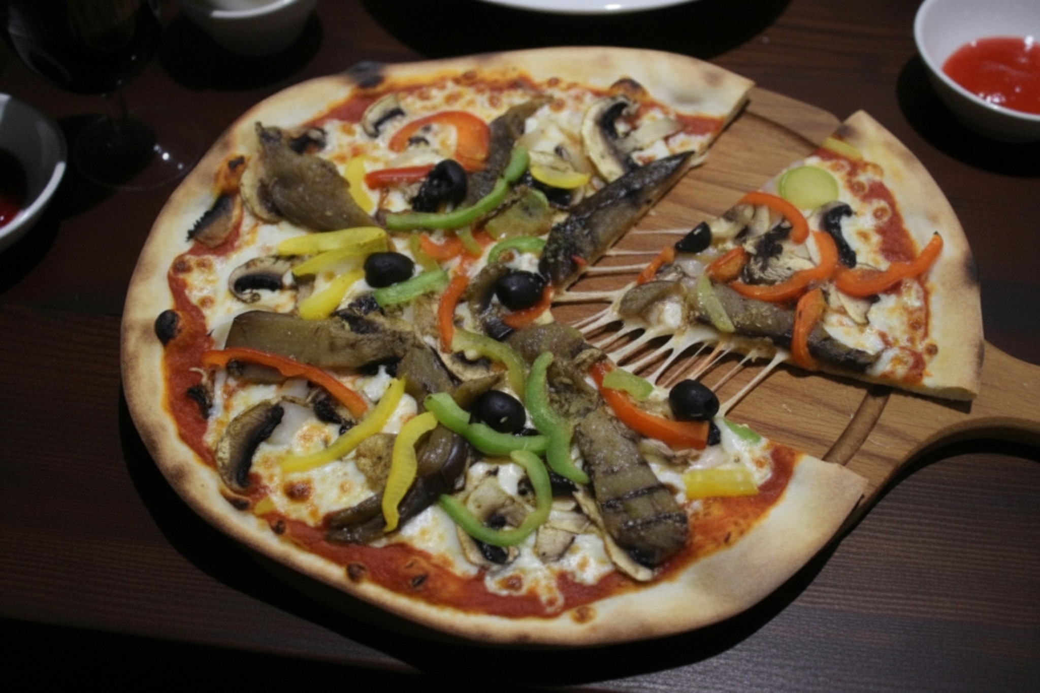 Base tomate, mozzarella, champignon, oignons , poivrons, aubergines grillées, olives, origan