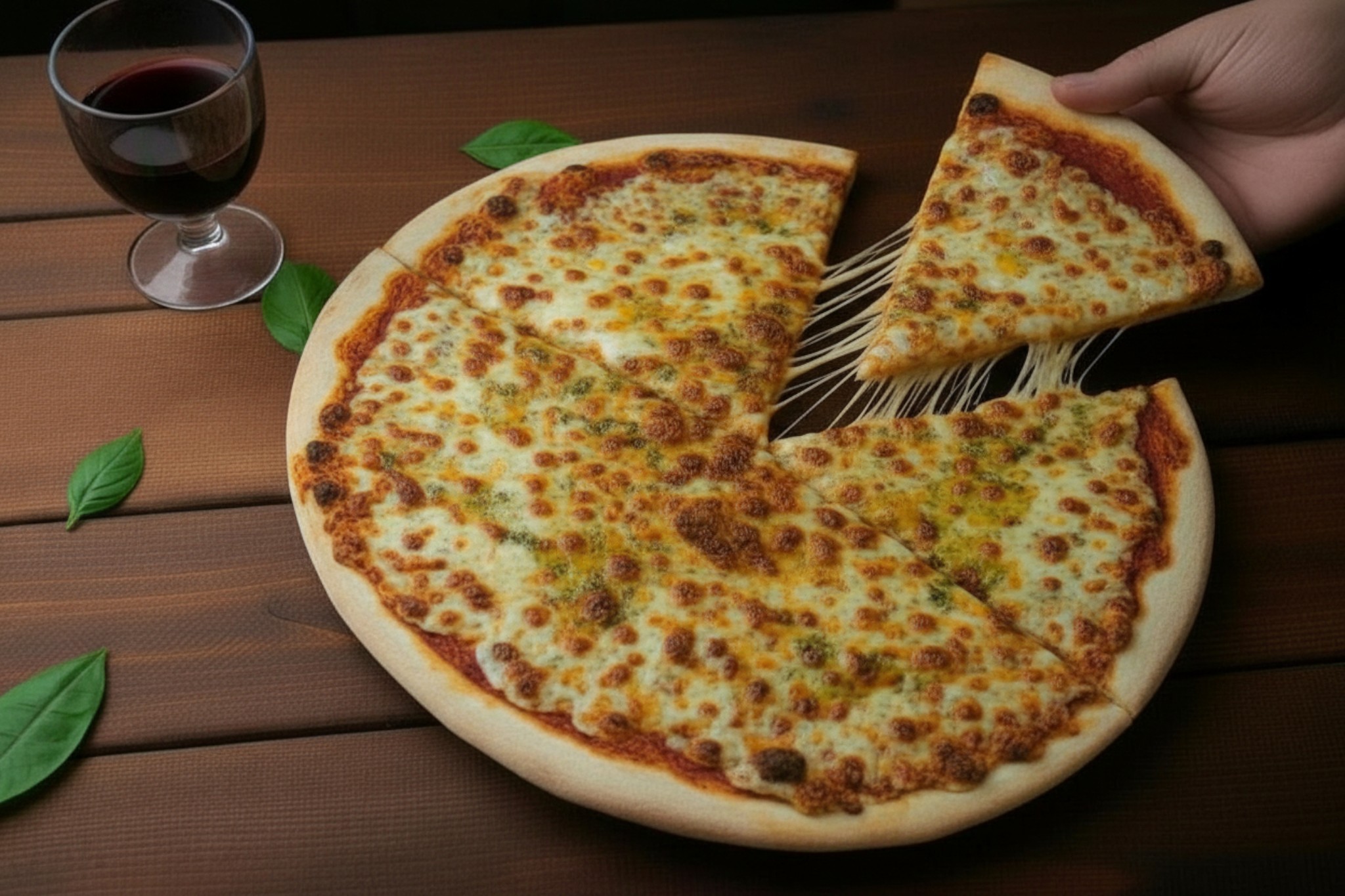 Base tomate, mozzarella, huile olive basilic, origan