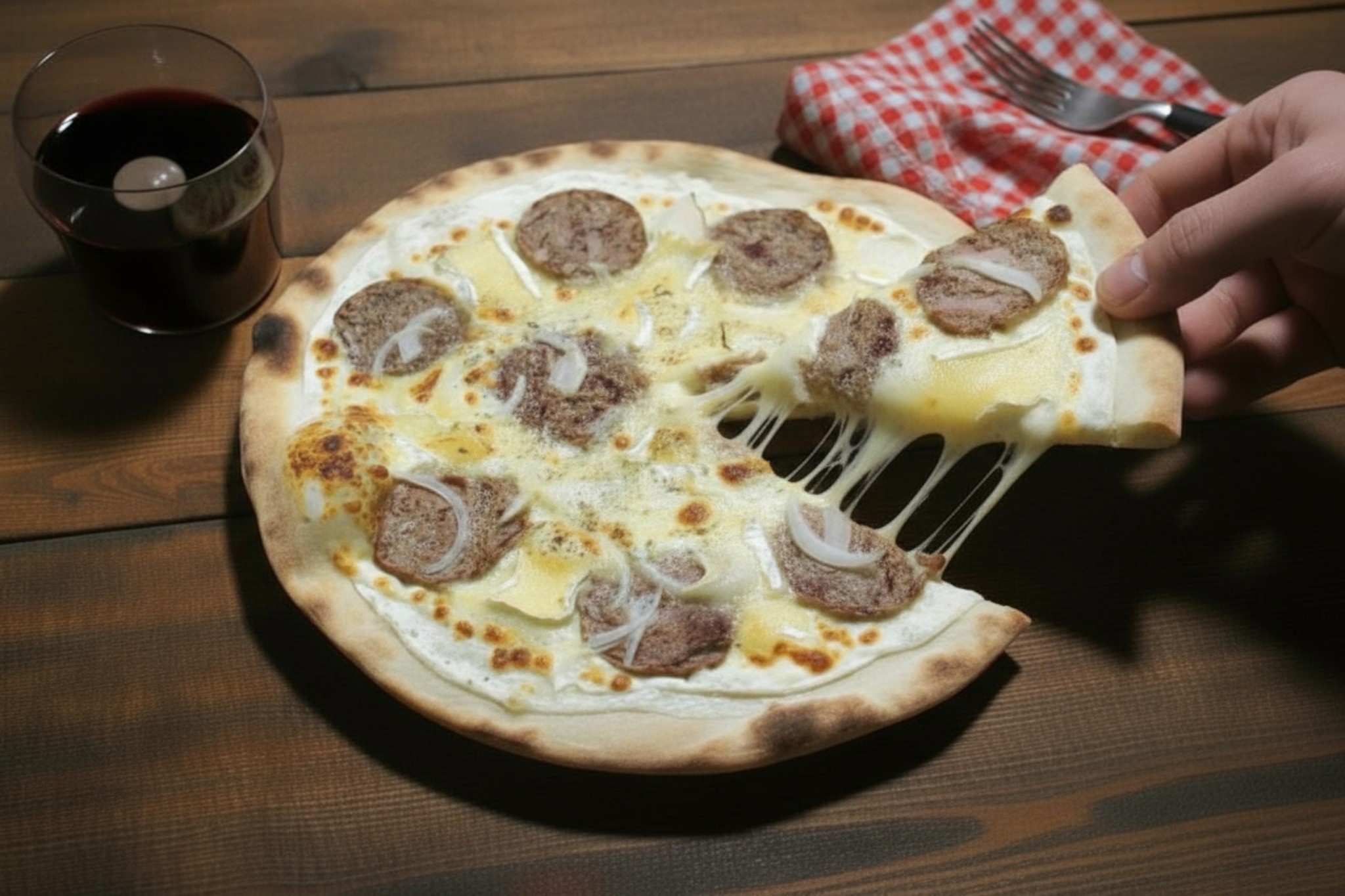 Base crème, mozzarella, andouille, camembert, oignons , origan
